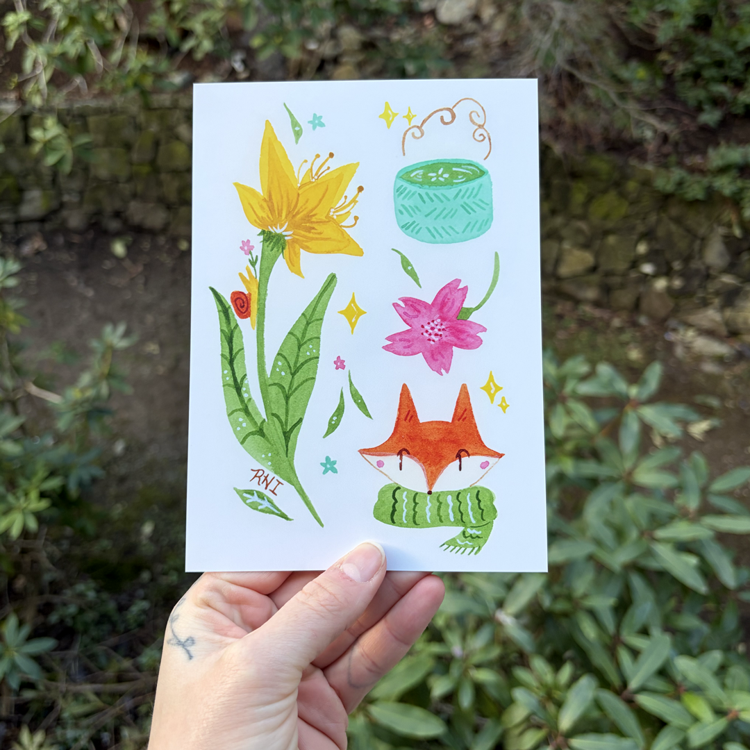 Note: the photos here feature the first print edition with high saturation and my former pseudonym Maen Illustrates. The new version of the book has adjusted colours for accuracy and features my real name, Rhi Forsyth.